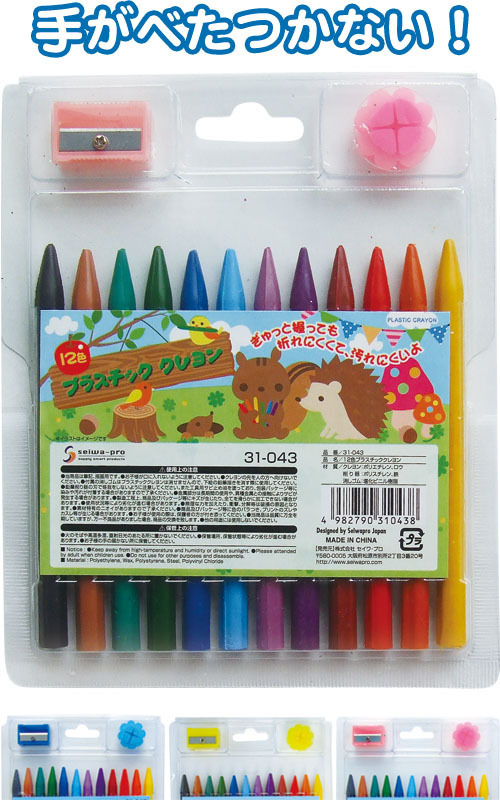 【まとめ買い=注文単位12個】12色 プラスチック クレヨン 31-043(se2a657)