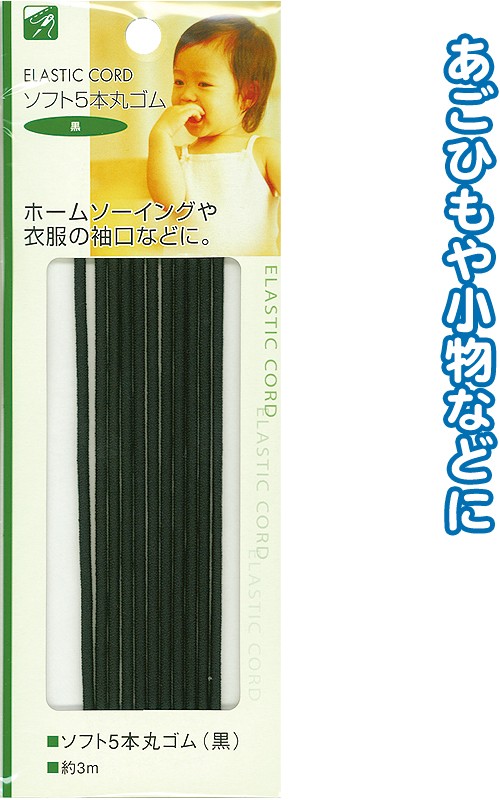 【まとめ買い=注文単位12個】ソフト5本丸ゴム(黒)3m 23-077(se2b077)