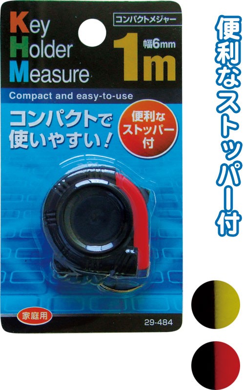 【まとめ買い=注文単位12個】軽くて携帯便利!コンパクトメジャー1mキーホルダー付 アソート(色おまかせ)29-484(se2b382)