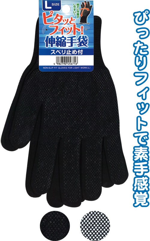 【まとめ買い=注文単位12個】ピタッとフィット! 伸縮 手袋 滑り止め付き L アソート(色おまかせ) 作業用 軍手 メンズ レディース 45-671(se2c542)