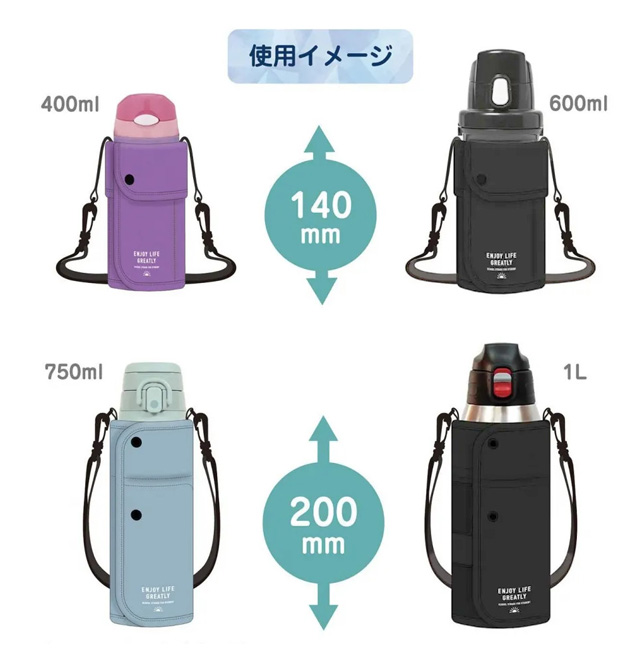 水筒に合わせてサイズが変えられる!ショルダーベルト付き水筒カバー