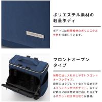 扉側にはタブレットなどを収納できるクッション付きポケット、メイン収納部には荷物の飛び出しを防止するポケット付き中仕切りが装備。