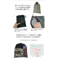 中身が見えるメッシュ生地で、バッグに詰め込む衣類や小物の収納に便利な巾着です。