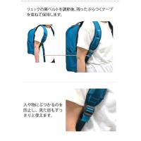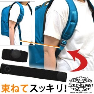 リュックサックを背負った時の邪魔なぶらつくテープを束ねて保持します。