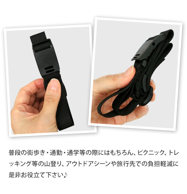 普段の街歩き・通勤・通学等の際にはもちろん、ピクニック、トレッキング等の山登り、アウトドアシーンや旅行先での負担軽減に是非お役立て下さい♪