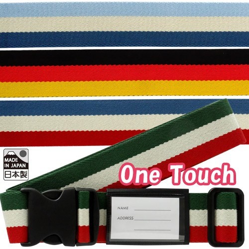 ワンタッチで着脱が簡単なスーツケースベルト!ネームカード付きなのでこれ1本でスーツケースの目印に。安心の日本製。バックルのカラーはすべての柄がブラックです。