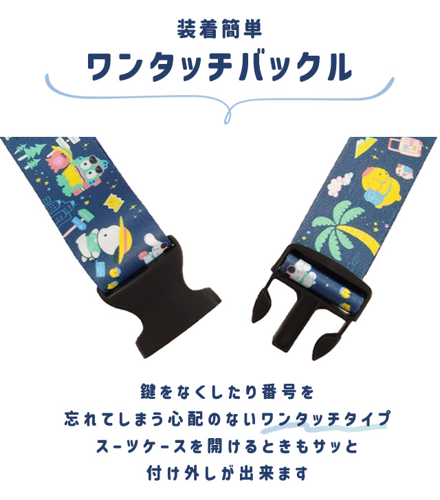 *sanrio/サンリオキャラクターズ/キャラクター/キャラクターグッズ/サンリオグッズ/旅行用品/旅行グッズ/便利グッズ/旅行小物/旅行雑貨/トラベルグッズ/トラベル用品/トラベル小物/ラゲージベルト/バゲッジベルト/キャリーバッグ/キャリーバック/かばん/鞄/海外旅行/国内旅行/修学旅行/学生/卒業旅行/女子旅/小学生/中学生/高校生/大学生/大人/子供/子ども/便利/可愛い/レディース/女性/女の子/女友達/プレゼント/ギフト/贈り物/お祝い/お返し/誕生日/バースデー/母の日/父の日/敬老の日/10代/20代/30代/クリスマス/バレンタイン/ホワイトデー/旅行好き/サンリオ好き/入学祝い/卒業祝い/就職祝い/進級/新生活/留学/遠征/ライブ/コンサート/推し活/ネイビー/紺/ピンク/カラフル/ポップ/ハローキティ/クロミ/シナモロール/ポムポムプリン/ポチャッコ/ハンギョドン/タイニーチャム/ミルク/バク/さゆり/ピーちゃんズ/マフィン/トランクベルト/おしゃれ*
