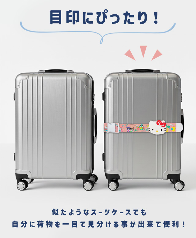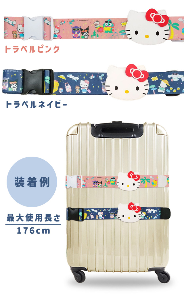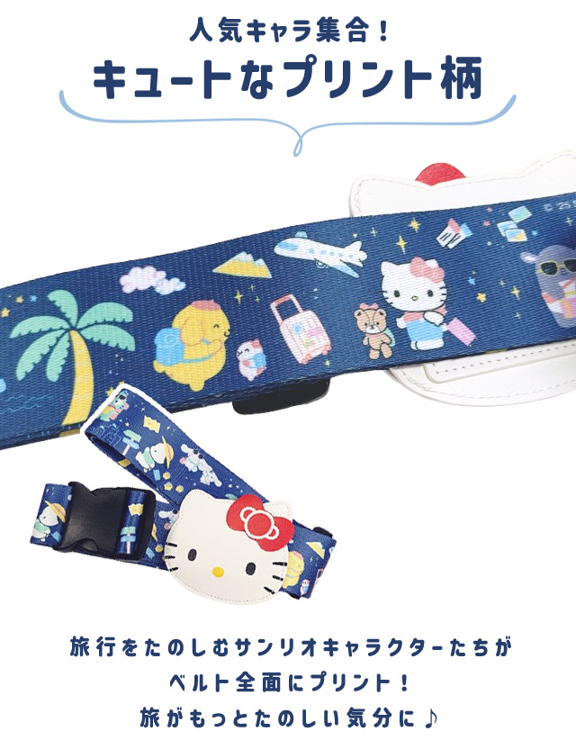 旅行を楽しむサンリオキャラクターたちがベルト前面にプリント!旅がもっとたのしい気分に♪