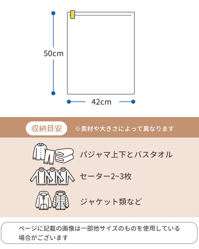 収納目安:セーター2〜3枚、パジャマ上下とバスタオル、ジャケット類など