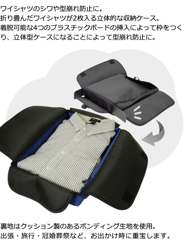 ワイシャツ2枚収納!シワ・型崩れ防止 *旅行用品/便利グッズ/クロスケース/衣類/ヴァリュウ物産/敬老の日/衣服/あると便利/大人/国内旅行/海外旅行/荷物整理/洋服/パッキング用品/収納ケース/衣類入れ/仕事/機能的/収納グッズ/メンズ/ギフト/プレゼント/ワイシャツ用/ワイシャツ収納/シャツ用/クロスケース/敬老の日/勤労感謝の日/旅行小物/海外/荷物整理/パッキング用品/仕分け/仕事用/ネイビー/紺/ブラック/黒/ブルー/青/冠婚葬祭/フォーマル/予備/備え/式典/結婚式/葬式/通夜/パーティー/入学式/入社/商談/面接/就活/転職/就職/入社式/スーツ/収納/収納グッズ/父の日ギフト/社会人/お祝い/贈り物/入社祝い/就職祝い/昇進祝い/成人祝い/お別れ/送別会/記念品/記念日/夫/彼氏/男友達/叔父/兄/弟/友人/先輩/後輩/上司/部下/男性/シンプル/収納ケース/保管/持ち運び/海外出張/トラベルケース/携帯用/しわ防止/ビジネスマン/サラリーマン/クリスマス/バレンタイン/コスプレ/携帯/スリム/スマート/板入り/実用的/機能的/贈り物/撥水/衣類収納ポーチ