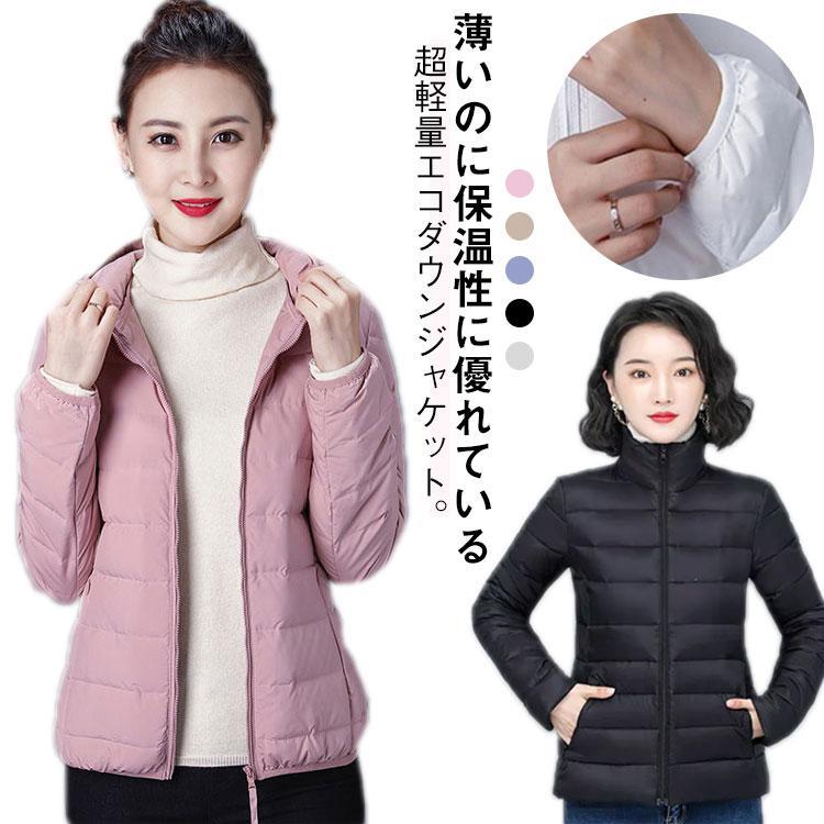 フード付き ウルトラライト ダウンジャケット レディース ライトダウン エコダウン 中綿ジャケット スタンドカラー 立ち襟 暖かい 軽量 防風 防寒