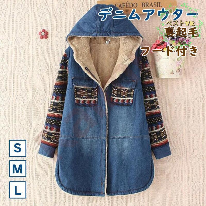 秋新作 デニムコート 暖かい デニムコート ロング フード付き 裏起毛 冬 レディース フード付き 大きいサイズ アウター ボアジ