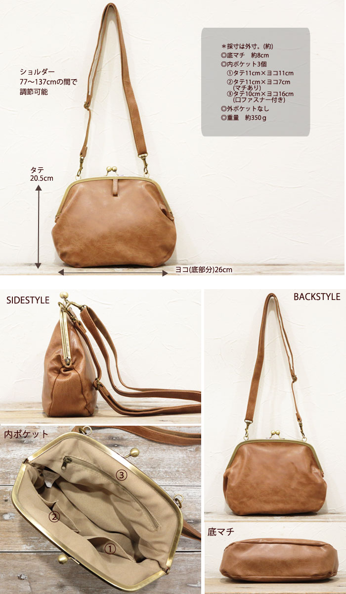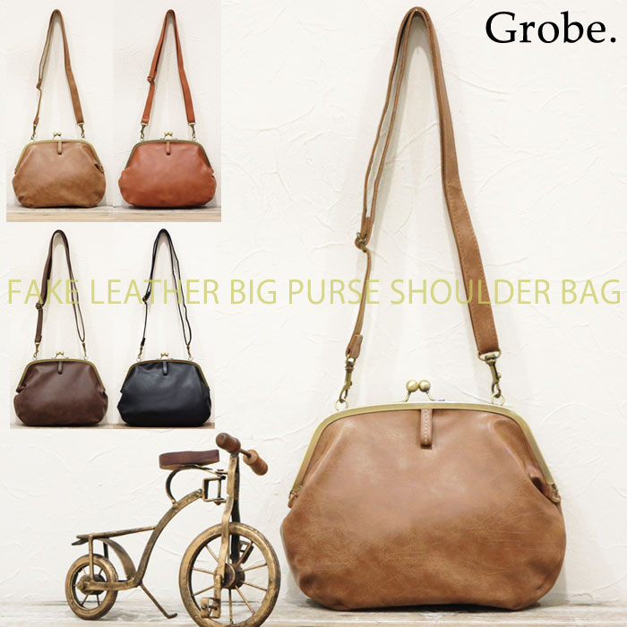 手ぶらでお出掛け♪がまぐちショルダーバッグミニバッグ 大きながま口デザインが可愛い◆フェイクレザーBIG斜めがけかばん鞄 カバン ラフィール