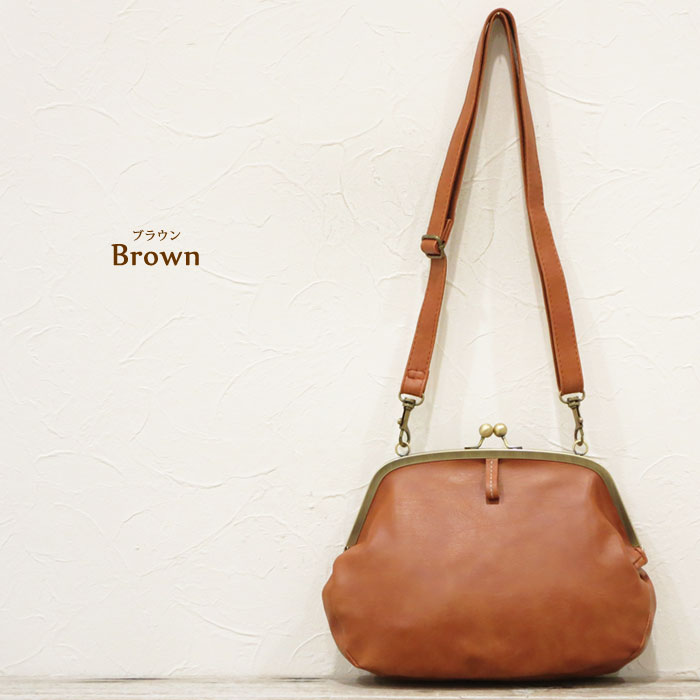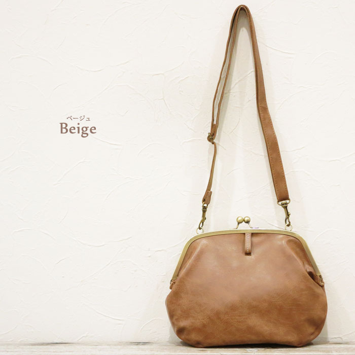 /大きながま口デザインが可愛い◆フェイクレザーBIGがま口ショルダーバッグ