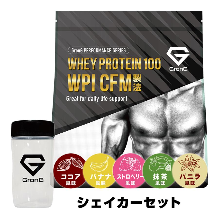 グロング ホエイプロテイン100 WPI CFM製法 シェイカー セット 風味付き 1kg GronG 爆買