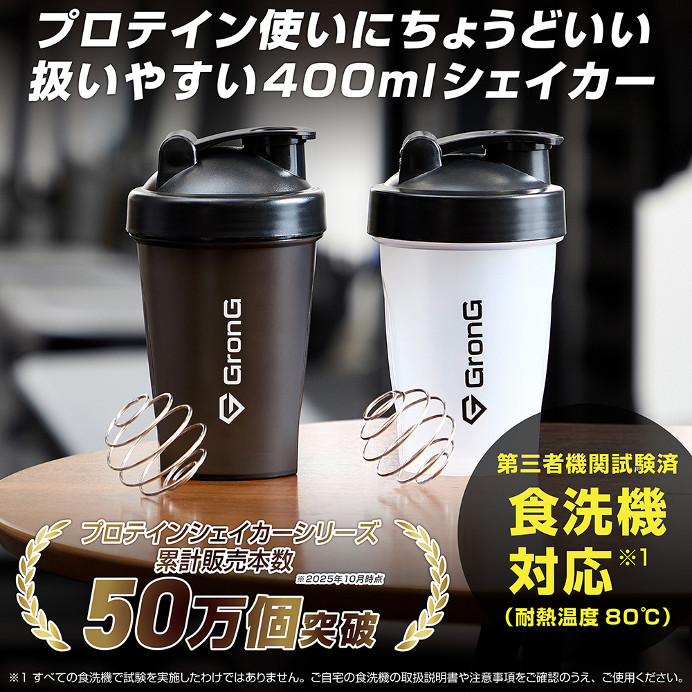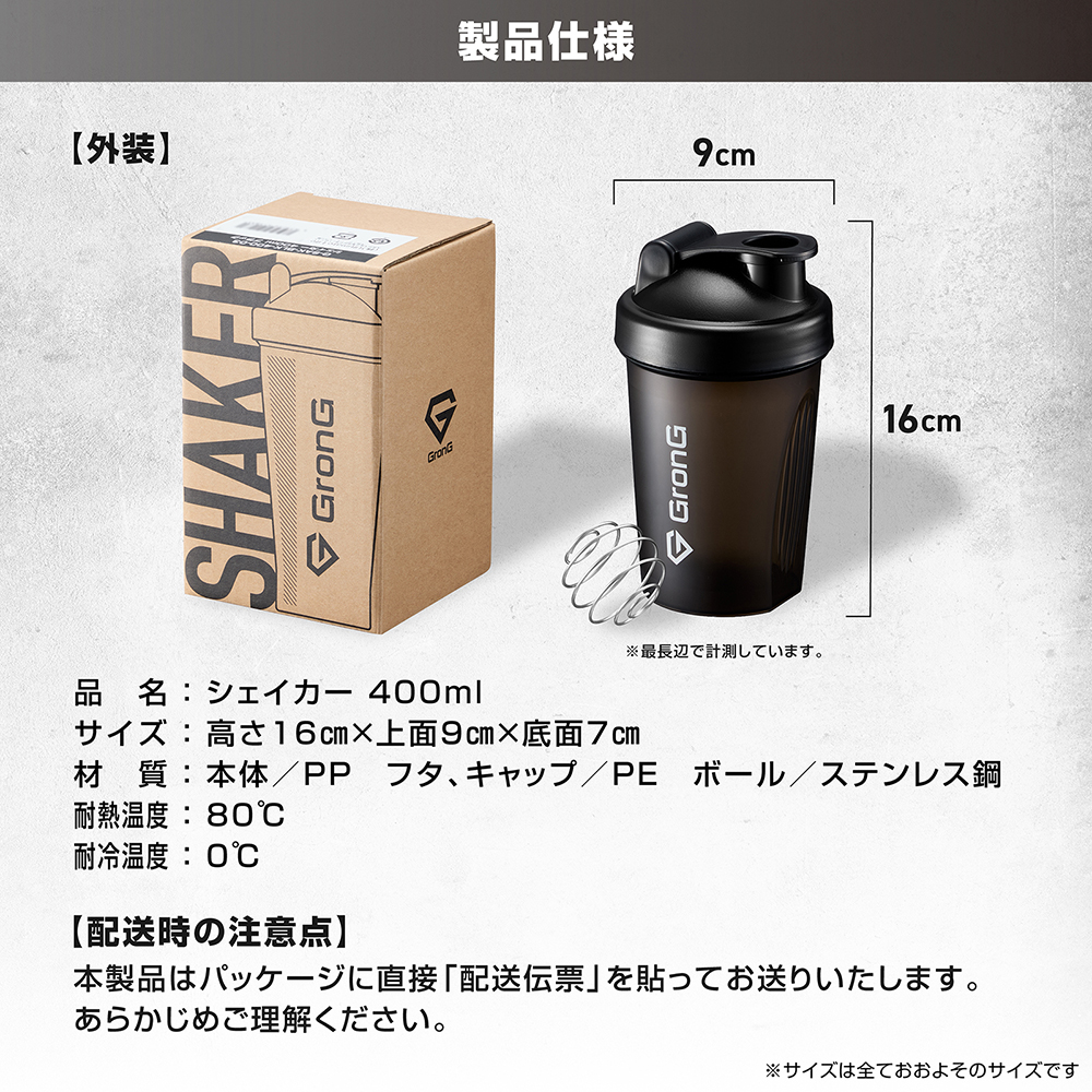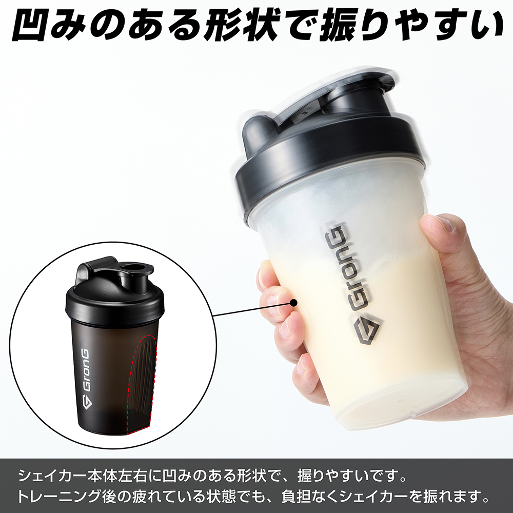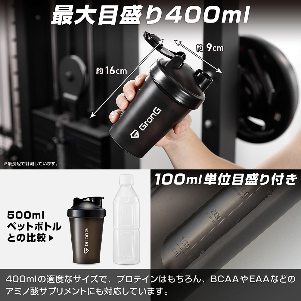 プロテインやアミノ酸ドリンクに使える「プロテインシェイカー 400ml」です。