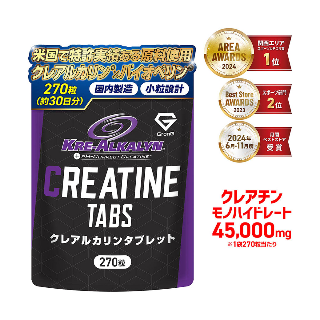 スポーツ先進国である米国において特許実績を持つAll American Pharmaceutical社が開発した、クレアルカリン(クレアチンモノハイドレート原料)を使用した製品です。日本国内のGMP認定工場で製造し、1日あたりの推奨摂取量を毎日続けても約30日間使用できる内容量と、継続しやすい小粒設計に仕上げました。
