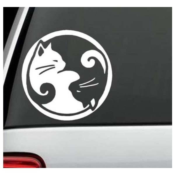 鍋ネコ 陰陽 眠り猫 カッティング ステッカー かわいい 猫 シルエット ノートパソコン 車のサイドミラーやバイクのカスタム デカール シール