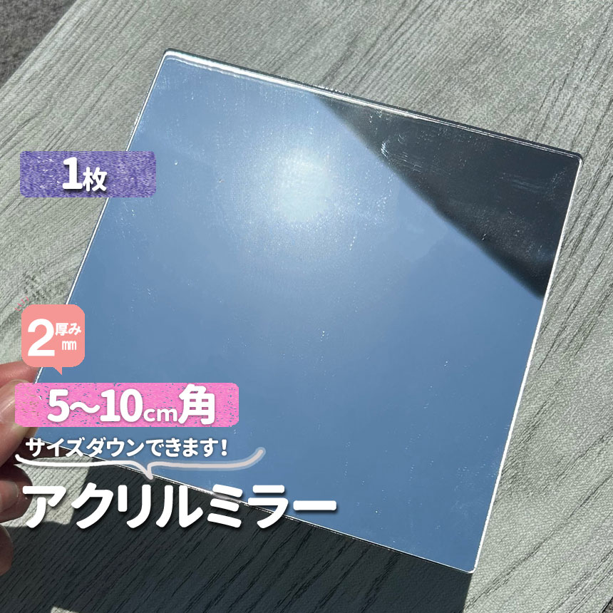 アクリル板 シルバーミラー厚2mm 四角正方形1枚単品 50/60/70/80/90/100mm サイズダウン1ミリ単位オーダーカット 加工 角丸 樹脂板材 カガミ鏡