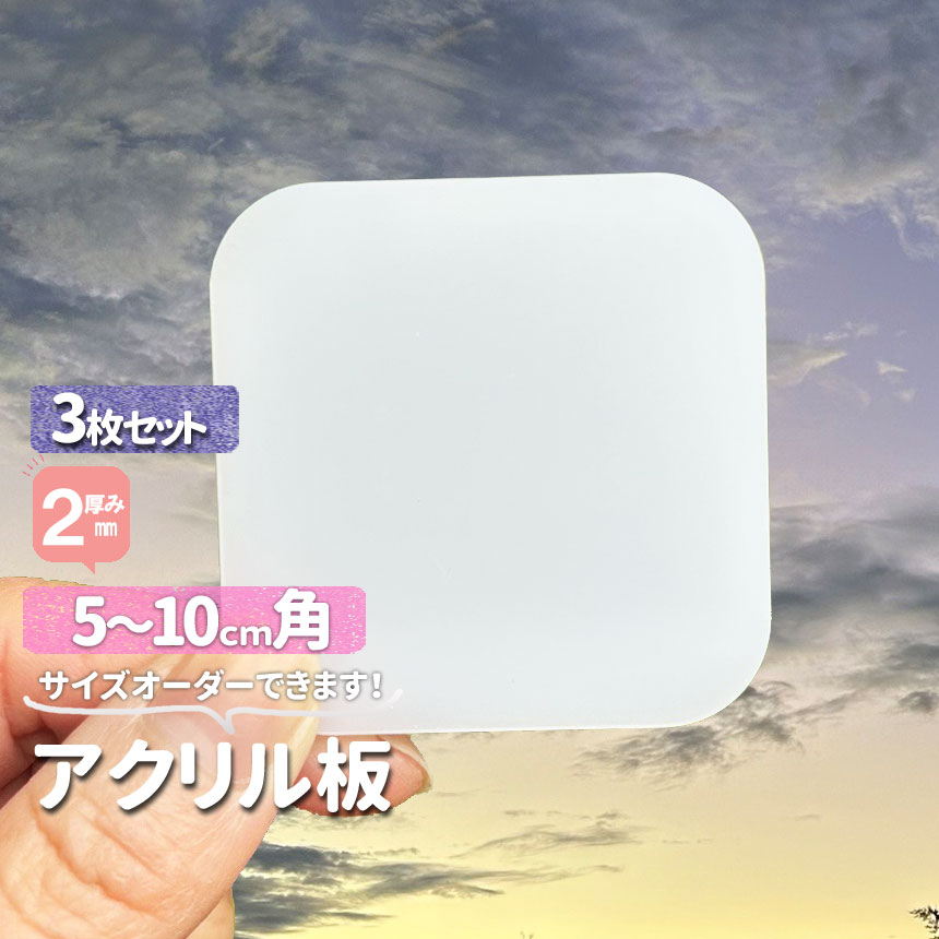 アクリル板 四角正方形 乳半色厚2mm3枚セット 50/60/70/80/90/100mm 1cm単位カット サイズ調整 DIY 特注サイズ 樹脂板材  オーダーカット