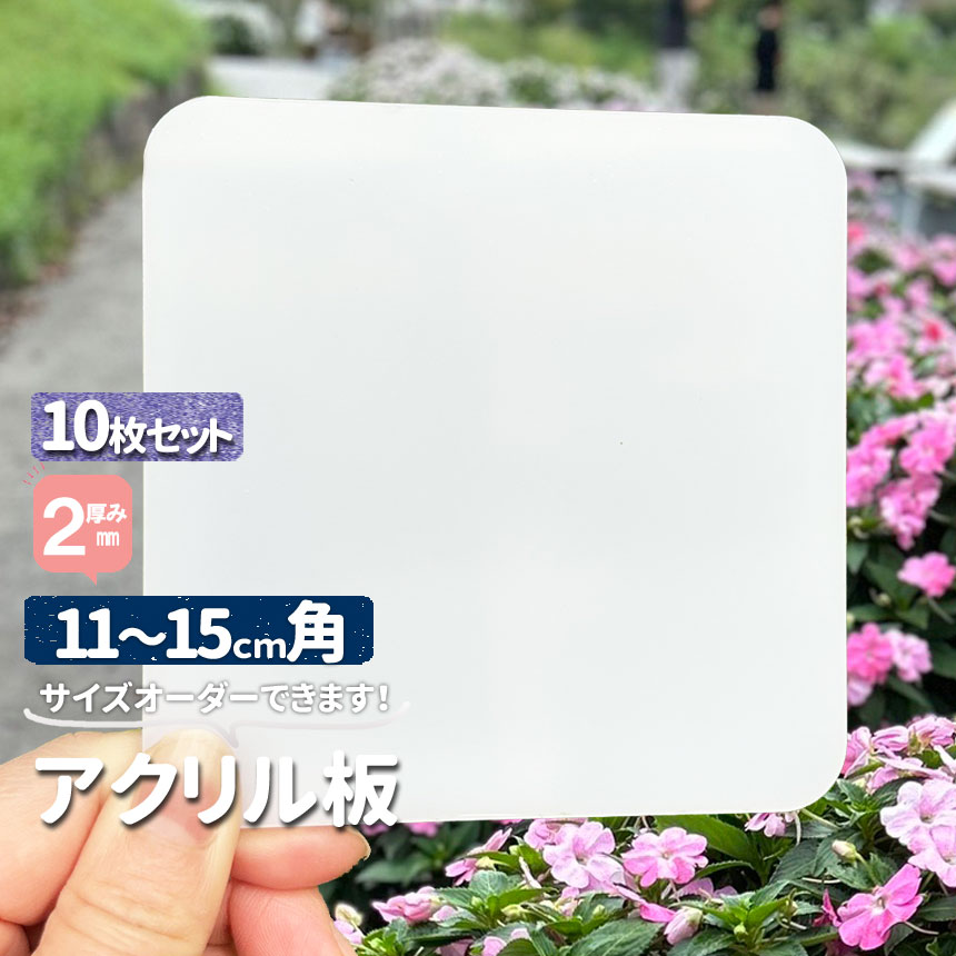 アクリル板 四角正方形 乳半色厚2mm10枚セット 110/120/130/140/150mm 1cm単位カット サイズ調整 DIY 特注サイズ 樹脂板材  オーダーカット