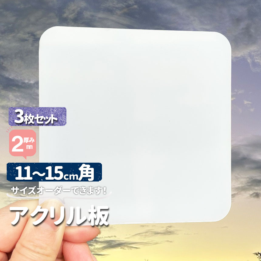 アクリル板 四角正方形 乳半色厚2mm3枚セット 110/120/130/140/150mm 1cm単位カット サイズ調整 DIY 特注サイズ 樹脂板材  オーダーカット