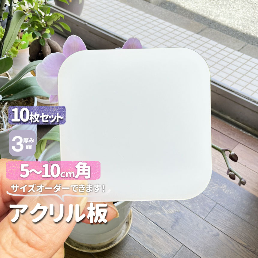 アクリル板 四角正方形 乳半厚3mm色10枚セット 50/60/70/80/90/100mm ミリ単位カット サイズ調整 DIY 特注サイズ 樹脂板材  オーダーカット