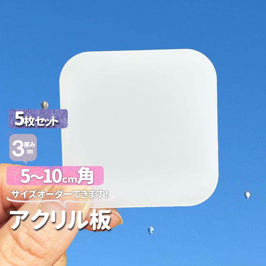 アクリル板 四角正方形 乳半厚3mm色5枚セット 50/60/70/80/90/100mm ミリ単位カット サイズ調整 DIY 特注サイズ 樹脂板材  オーダーカット