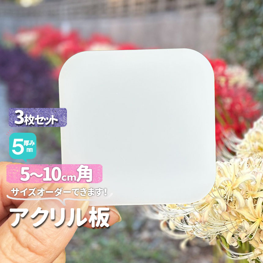 アクリル板 四角正方形 乳半色厚5mm3枚セット 50/60/70/80/90/100mm 1cm単位カット サイズ調整 DIY 特注サイズ 樹脂板材  オーダーカット