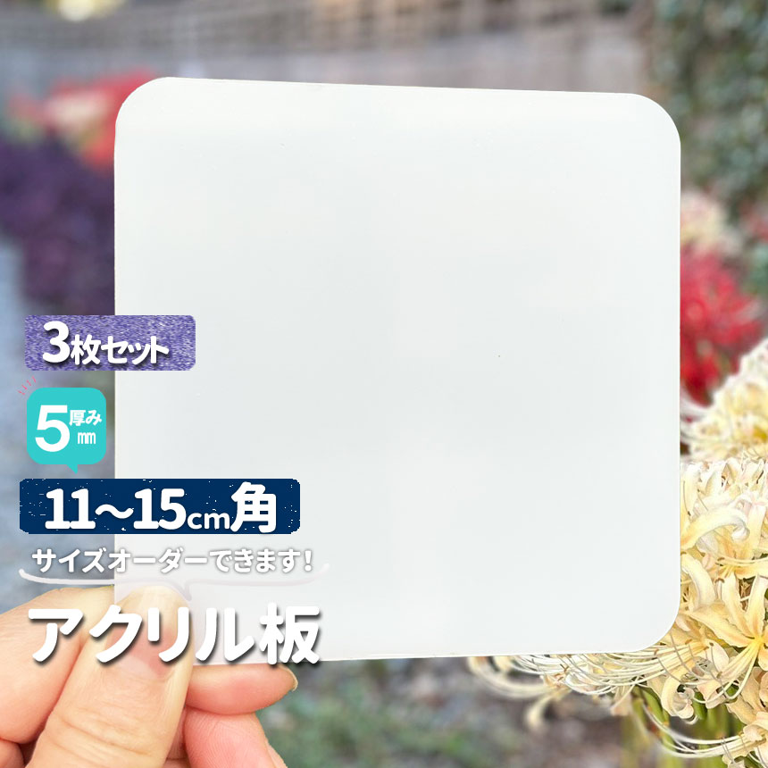 アクリル板 四角正方形 乳半色厚5mm3枚セット 110/120/130/140/150mm 1cm単位カット サイズ調整 DIY 特注サイズ 樹脂板材  オーダーカット