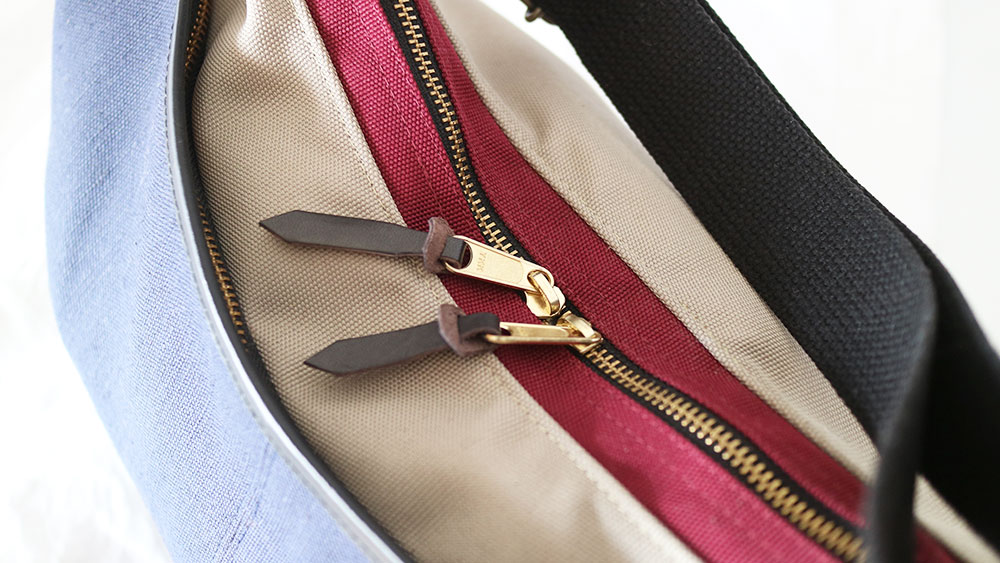 「スッと」ジッパーの開け閉めをスムーズにしたい。ファスナーの金具だけだと引きづらく感じることがありますが、指で持って引っ張りやすいようにするアイテムが「ジッパータブ」革の引手です。しっかりとした本物の革、姫路レザーで作りました。たしかに、アウトドア系の耐久性を重視したコードの物など機能性の高いタイプなどもありますが、こだわった形は昔ながらのシンプル・デザイン。クラシックに映えるスマートなヌメ革をチョイスしています。