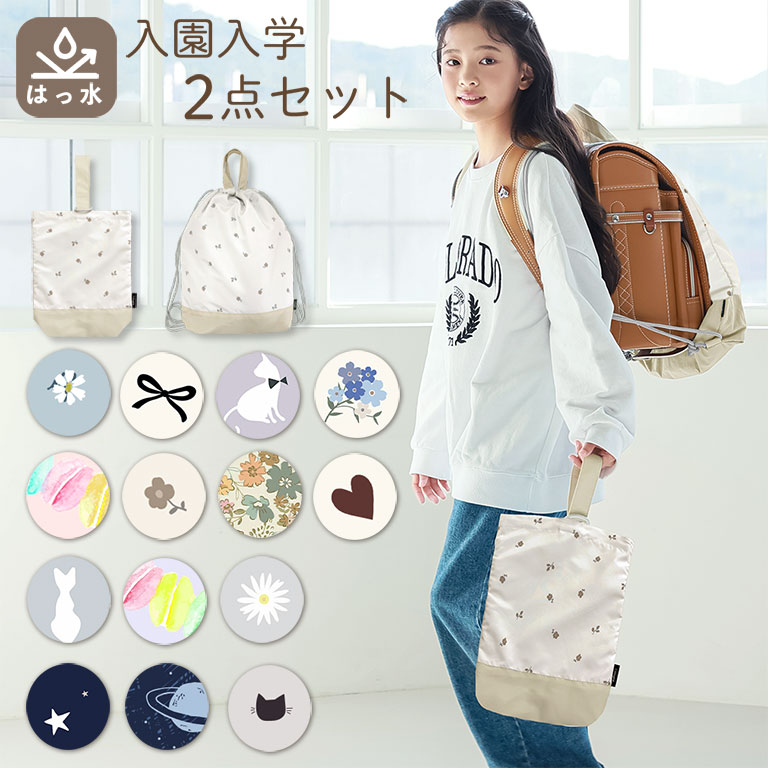 撥水 入園入学 2点セット 体操着袋 上履き入れ 大きめ 子供 キッズ 大容量 マチ付き シンプル 柄 入園 入学 撥水 体操服袋 運動着入れ dz187set