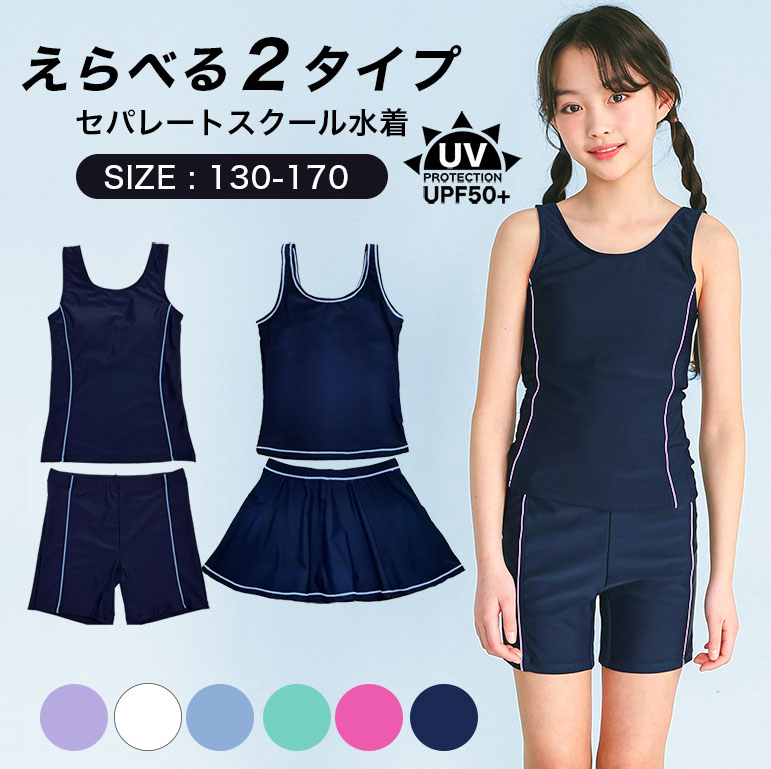 スクール水着 女子 セパレート 小学校 中学校 大きいサイズ インナーパンツ付き スカート パンツ UPF50+ 女子 キッズ ネイビー 女児 sksa