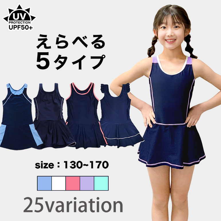 スクール水着 女子 キッズ 大きいサイズ インナーパンツ付き スカート ワンピース UVカット UPF+50 ジュニア 女の子 小学生 中学生 sksb