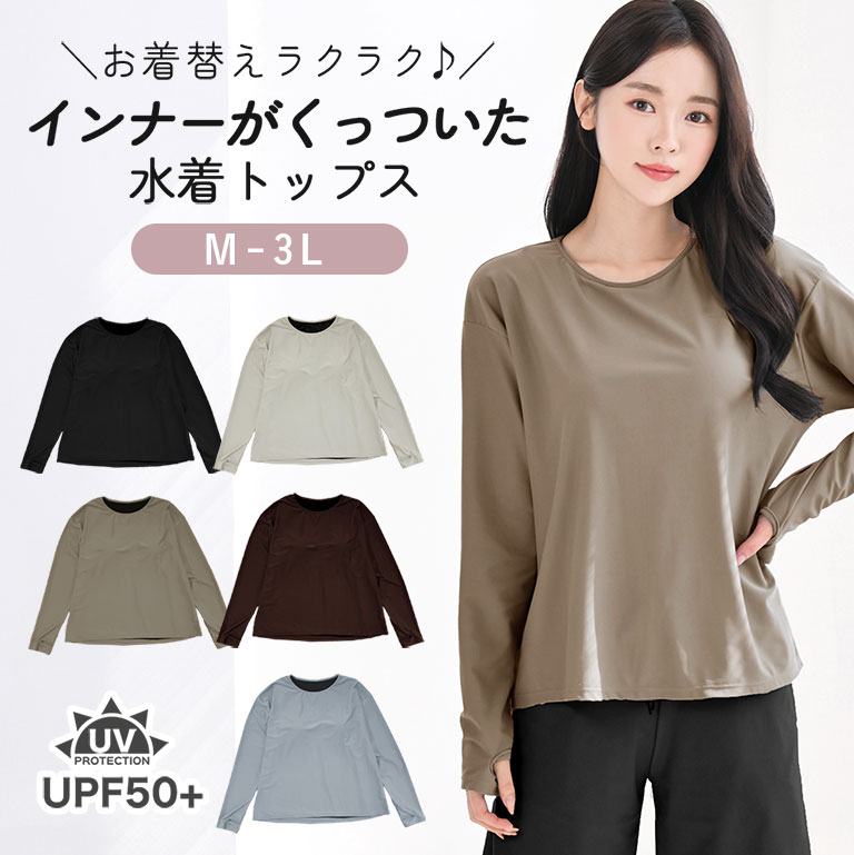 インナーがくっついた 水着 レディース 体型カバー インナー付き 指穴付き トップス Tシャツ 長袖 可愛い スポーツウェア ts012