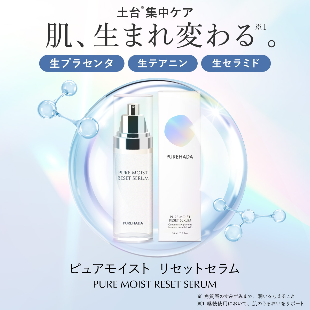 プラセンタ 美容液 PUREHADA 生プラセンタ 生ミルクセラミド 生テアニン EGF ハリ ツヤ 保湿 乾燥 国産 20mL 約44日分(一日3プッシュ)12/1新発売