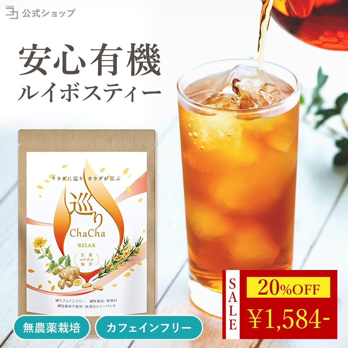 〜 クーポン使用で 20%OFF セール開催中 〜 ルイボスティー 国産 農薬不使用 無添加 生姜 菊芋 ノンカフェイン 巡りChaCha 40包 オーガニック ホット水出しOK