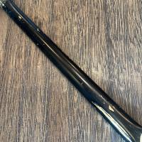 ネックは後から黒の塗装が施されており、ヘッドは白と黒が混ざった特徴的な模様をしています。