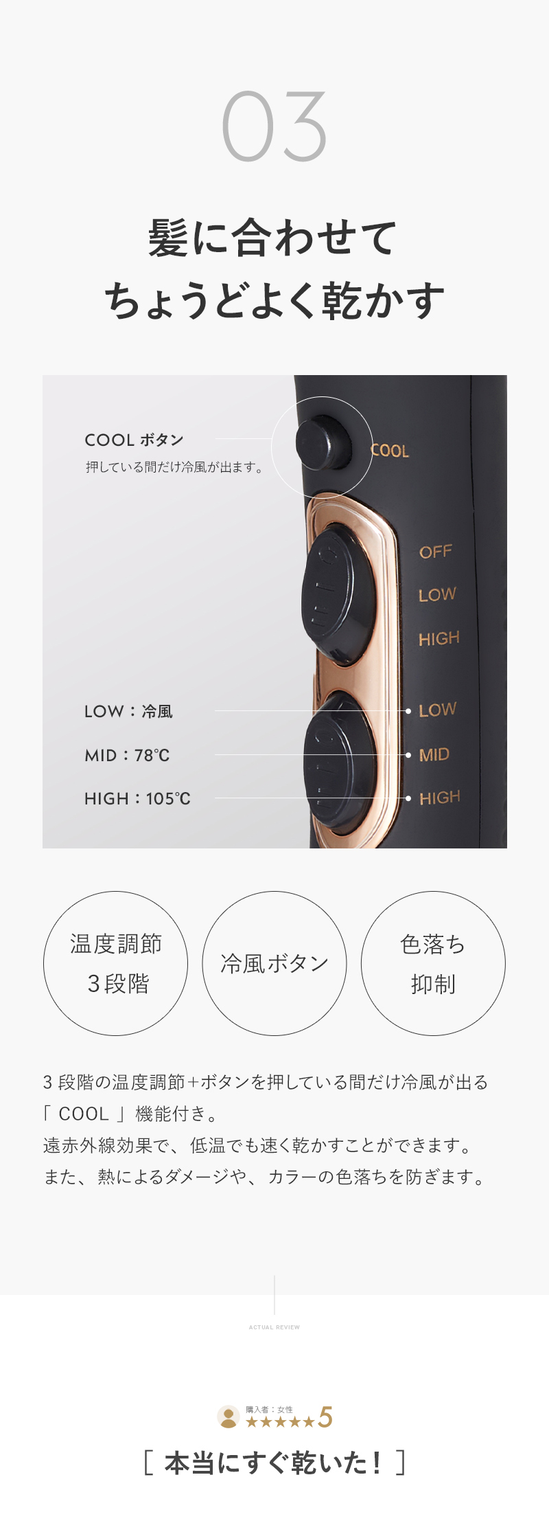 ・高級ドライヤーにしか搭載されてない高性能「遠赤外線」を搭載