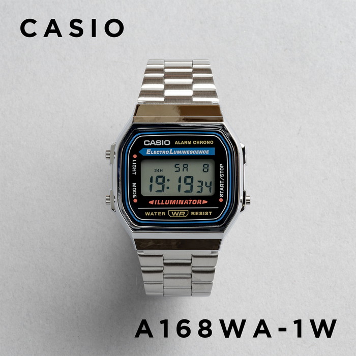 カシオA168は、2011年にグッドデザイン・ロングライフデザイン賞を受賞した腕時計です。1988年の発売以来、一貫して同じデザインを守り続けているこの腕時計は、とくにヨーロッパでの人気が高く、"CASIO Vintage"として親しまれています。緑がかった青色の光が液晶パネルを均一に照らす、ELバックライトを搭載しているのも、本製品ならではの特徴です。今でこそELバックライト搭載の腕時計は、G-SHOCKのほうが優勢ですが、採用したのはA168のほうが先で、G-SHOCKに先駆けること6年も前のことでした。 映画「ウォンテッド」ジェームズ・マカヴォイ着用 / A168WA-1W 映画「ワンダーウーマン 1984」クリス・パイン着用 / A168WA-1W | |