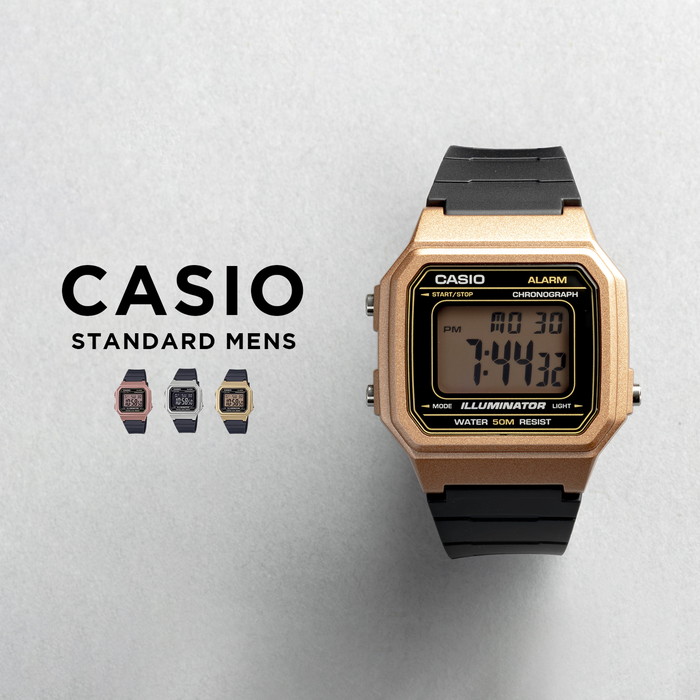 | ■ カラー ■ W-217HM-5A ケース:ピンクゴールド(ブロンズ) 文字盤:ブラック ベルト:ブラック W-217HM-7B ケース:シルバー 文字盤:ブラック ベルト:ブラック W-217HM-9A ケース:ゴールド 文字盤:ブラック ベルト:ブラック →他のカラーはコチラ | |
