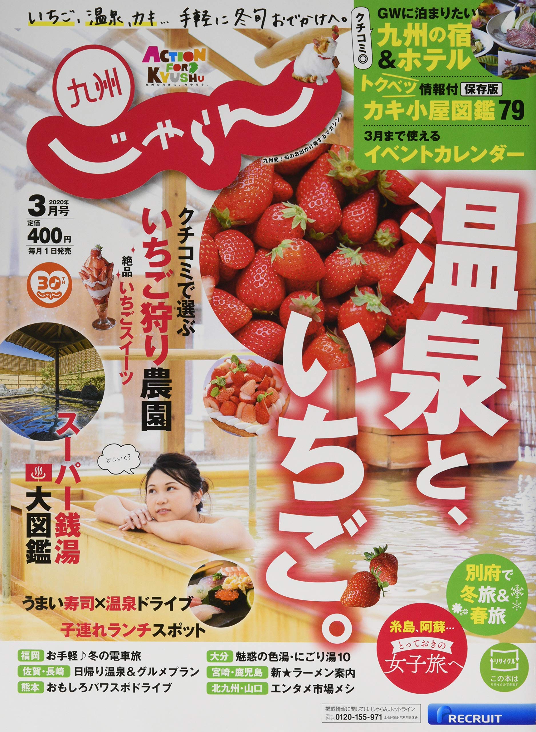 冬といえば、いちご! ということで、いちご狩りや絶品スイーツなど、 今が旬のいちごを大特集! 家族みんなでお出かけを♪ とにかく温まりたいアナタには、一日過ごせるスーパー銭湯がおすすめ。 さすが九州、全部温泉です。 冬に美味しさが増す魚を楽しめる寿司ドライブやカキ小屋図鑑も必見! 寒い冬も、九州じゃらんでHappyに乗り切ろう★ ==特集== 九州のいちご狩り農園34 行くならどっち?いちごスイーツ15 九州の"スーパー銭湯"大図鑑 うまい寿司×温泉ドライブ あなたの街のこどもwelcome♪ランチスポット クチコミ◎GWに泊まりたい宿・ホテル 〈3月まで使える〉イベントカレンダー40