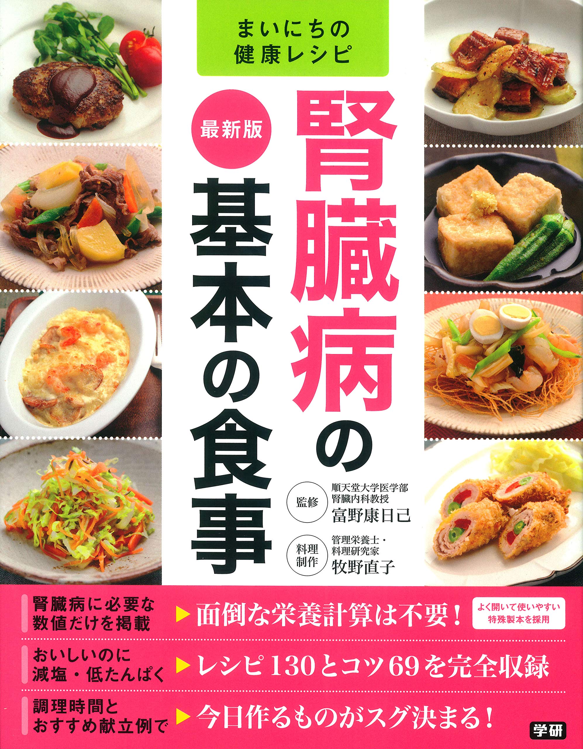 腎臓病、または腎臓の機能がよくないと診断されたら食事改善を。かんたんでおいしい、安心レシピ130とコツ69を掲載。腎臓病に必要な数値だけを掲載しているから、面倒な栄養計算は不要!調理時間とおすすめ献立例で今日作るものがスグ決まる!