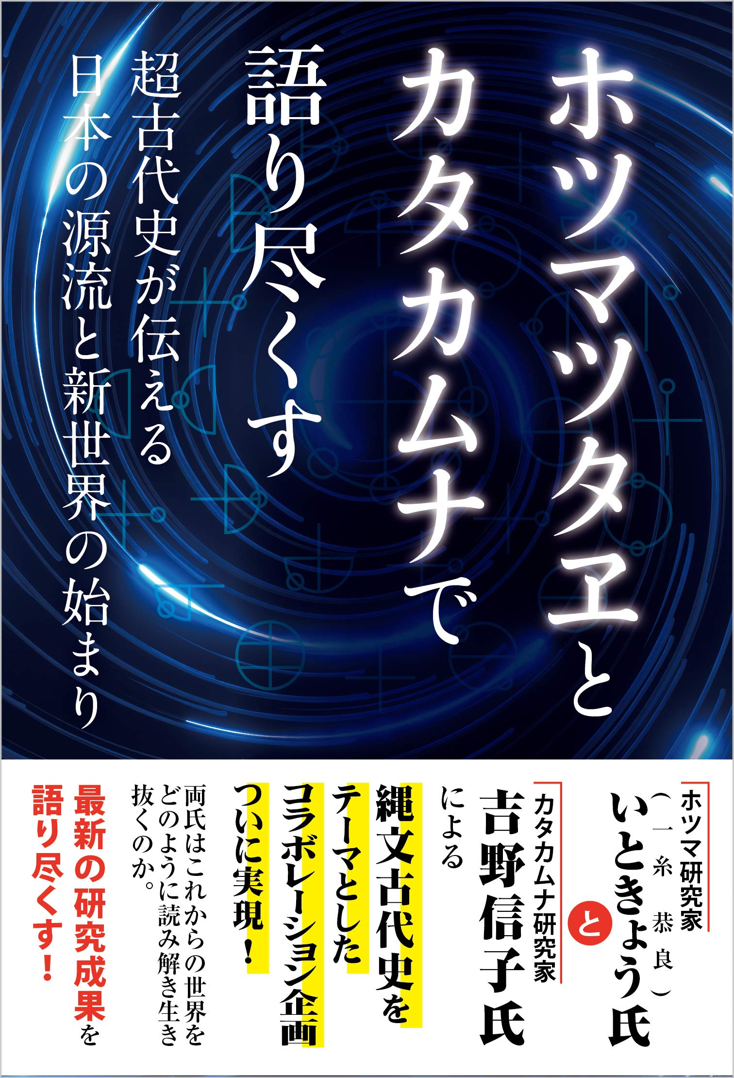 ホツマツタヱ研究家・いときょう氏と、カタカムナ研究家・吉野信子氏。 縄文古代史研究の第一人者同士のコラボレーション企画がついに実現! 両氏は、これからの世界をいったいどのようにとらえ、生き抜くのか? ◎カタカムナでわかった宇宙の構造 ◎ホツマ・カタカムナそれぞれの魂の意味 ◎縄文の叡智を蘇らせるホツマ、カタカムナ ◎ホツマを学べば、人が生まれ変わることが分かる ◎天皇制は命を紡ぐシステム ◎ホツマ、カタカムナから始まる新世界 ◎コロナ=太陽が放つ光=日ノ本の國、アフターコロナは日本が世界の中心に etc. ホツマツタヱでカタカムナを、カタカムナでホツマツタヱを。 二つの超古代文献で読み解かれた、最新の研究成果を語り尽くす。 超古代✕超科学のシナジー効果が発生ー それは、古代と令和とをつなぎ、さらなる新世界を想起させる超叡智である。 «目次» 「ホツマツタヱ」概要 「カタカムナ」概要 パート1 言霊、数霊、形霊は宇宙の真理 「名は体を表す」をカタカムナで裏付ける 陰陽は循環し、社会も変化する 言霊、数霊、形霊は宇宙の真理 ナは、仲良くのナ――陰陽の融合を示す ビッグバンで柱が立ち、異なる渦が同時に起きる 宇宙のすべてが表されている「ヒフミ九九算表」 海外における日本古代文献研究 アシアトウアンはアシア族の棟梁だった ホツマを学べば、人が生まれ変わることが分かる 古来、日本語は世界の共通語だった!? ヤマトタケルと「言霊の剣」 ホツマツタヱ、ヲシテの真理 兆形から文字が生まれてくる ホツマ・カタカムナそれぞれの魂の意味 ヲシテ文字アイウエオはビックバンから生まれた パート2 ホツマ、カタカムナから始まる新世界 セオリツヒメやワカヒメ、封印された神々の復活 宗像の三女神は龍神エネルギーそのもの ホツマ、カタカムナから始まる新世界 天皇制は命を紡ぐシステム 世界の共通デザイン、ハートは「アワの歌」に繋がる カタカムナでわかった宇宙の構造 日本語の始まりは縄文時代だった!? 縄文の叡智を蘇らせるホツマ、カタカムナ 祝詞に込められた罪、穢れ 日本から世界へ発信する「平和の波動」 「ユダヤと日本を繋げ」 歌を詠んで、調和して光となす