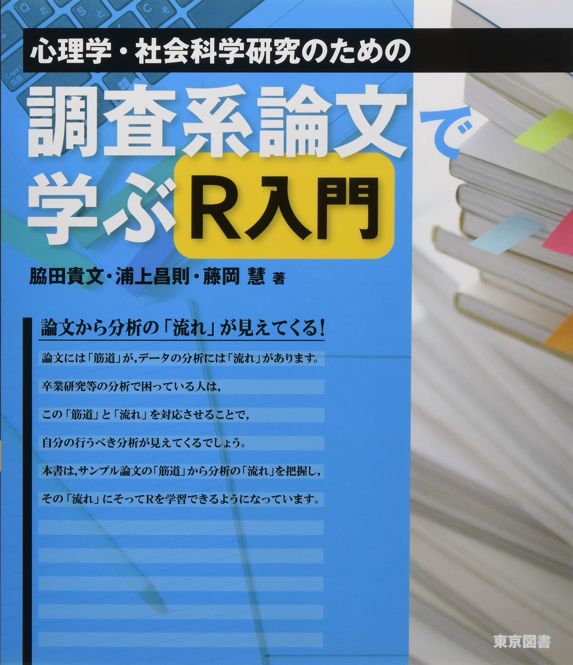 「流れ」を真似ることで分析の道筋が見えてくる! データの分析には「流れ」があります。 卒業研究等の分析で困っている人も、この「流れ」を知れば、 自分の行うべき分析の道筋が見えてくるでしょう。 本書は、サンプル論文の記述から分析の「流れ」を把握し、 その「流れ」にそってRを学習できるようになっています。 目次 第0章 はじめに 第1章 Rを使う環境を整える ■第1部 さまざまな分析に共通するRに関する事項 Rの基礎知識 第2章 Rの基礎:初めてRを使う人へ 第3章 R初心者から初級者へ ■第2部 心理学の研究で行われる分析の流れ 論文執筆に向けたR 第4章 インターンシップへの参加動機とその効果 (信頼性の検討・2要因分散分析:混合計画) 第5章 動物に対する共感性尺度の作成 (探索的因子分析・t検定・1要因分散分析:被験者間計画) 第6章 ペットを飼うことは精神的健康につながるか (確認的因子分析・信頼性の検討・相関係数・偏相関係数) 第7章 動機づけと学習成果の関連における学年差の検討 (共分散構造分析) ■第3部 心理学研究で用いられるさまざまな分析 第8章 t検定 第9章 探索的因子分析 第10章 尺度の信頼性 第11章 確認的因子分析 第12章 分散分析 第13章 共分散構造分析 付録 エラーリストと対応策 付録 「示したいこと」と「分析方法」の対応