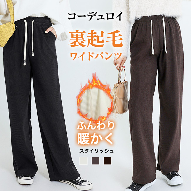 【クーポンで1880円】裏起毛 パンツ レディース 秋冬 ワイドパンツ あったか ストレッチ ズボン 美脚 ゆったり スウェット 通勤 防寒 厚手 体型カバー 爆買