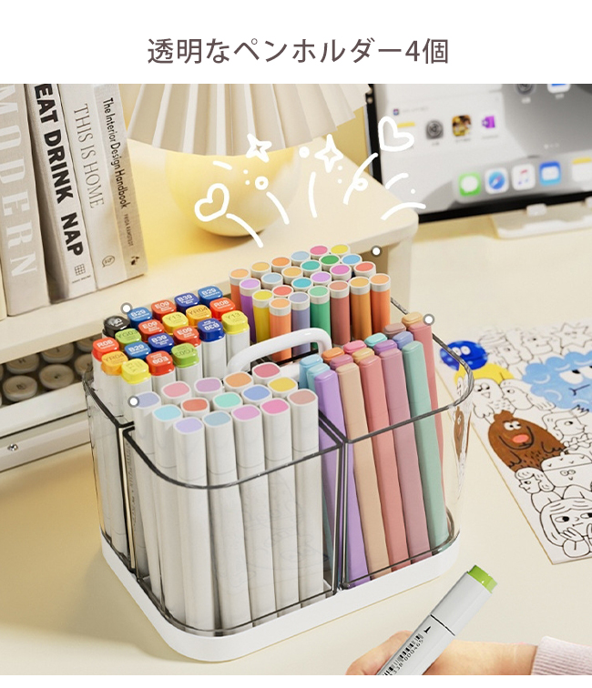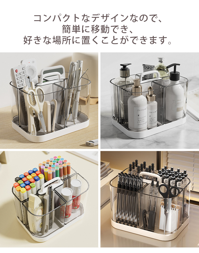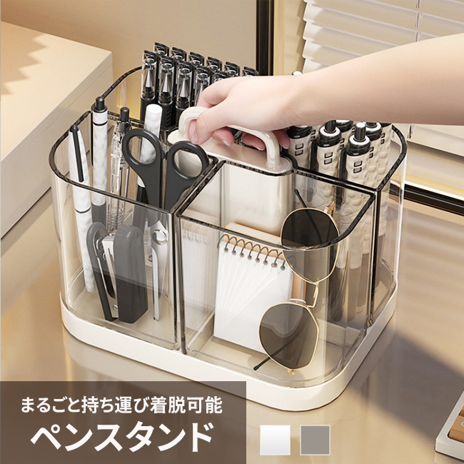【クーポンで200円OFF】ペンスタンド ペン立て ペンホルダー ペン入れ 4格 大容量 着脱可能 持ち運び 取っ手 仕切り 透明 卓上収納 オフィス 爆買