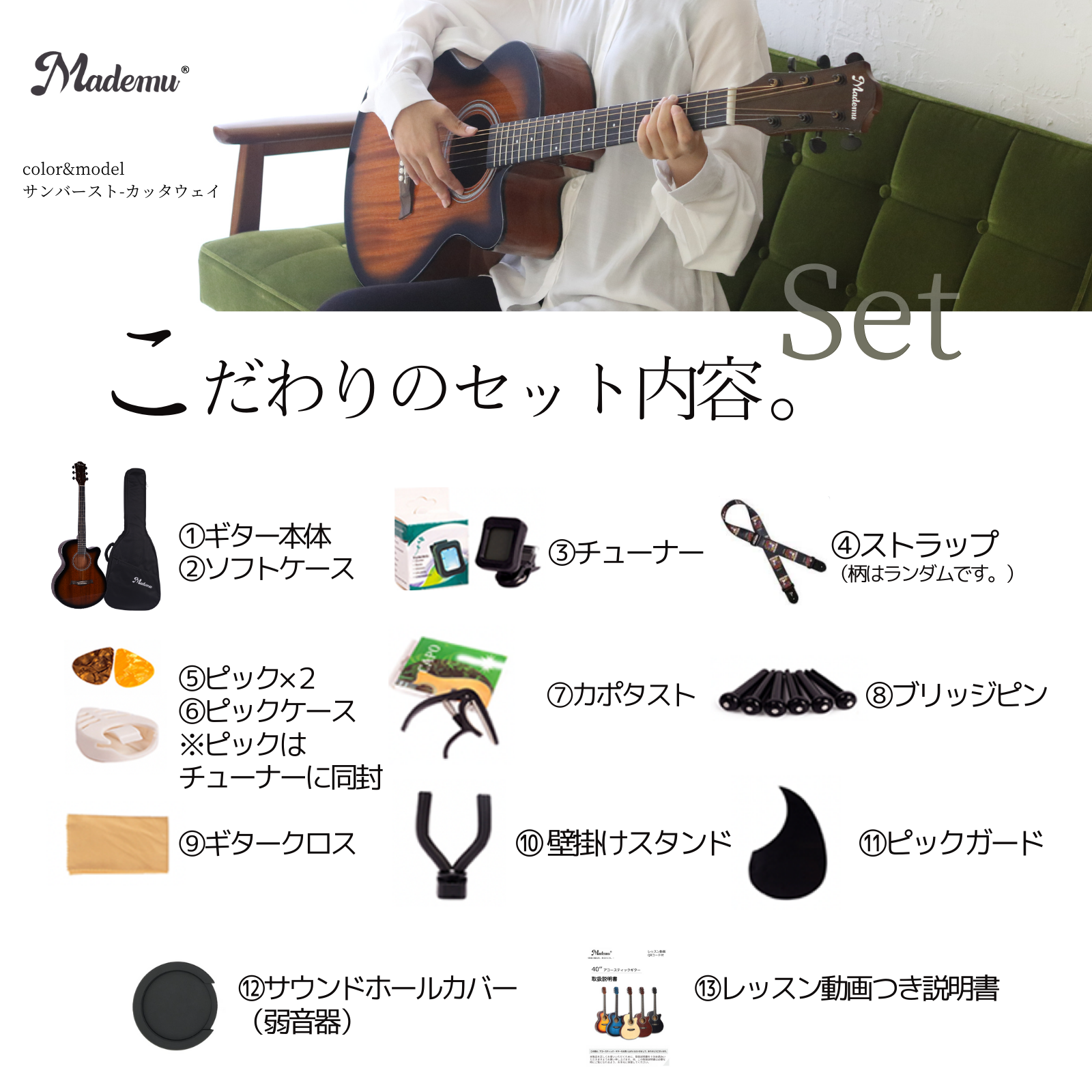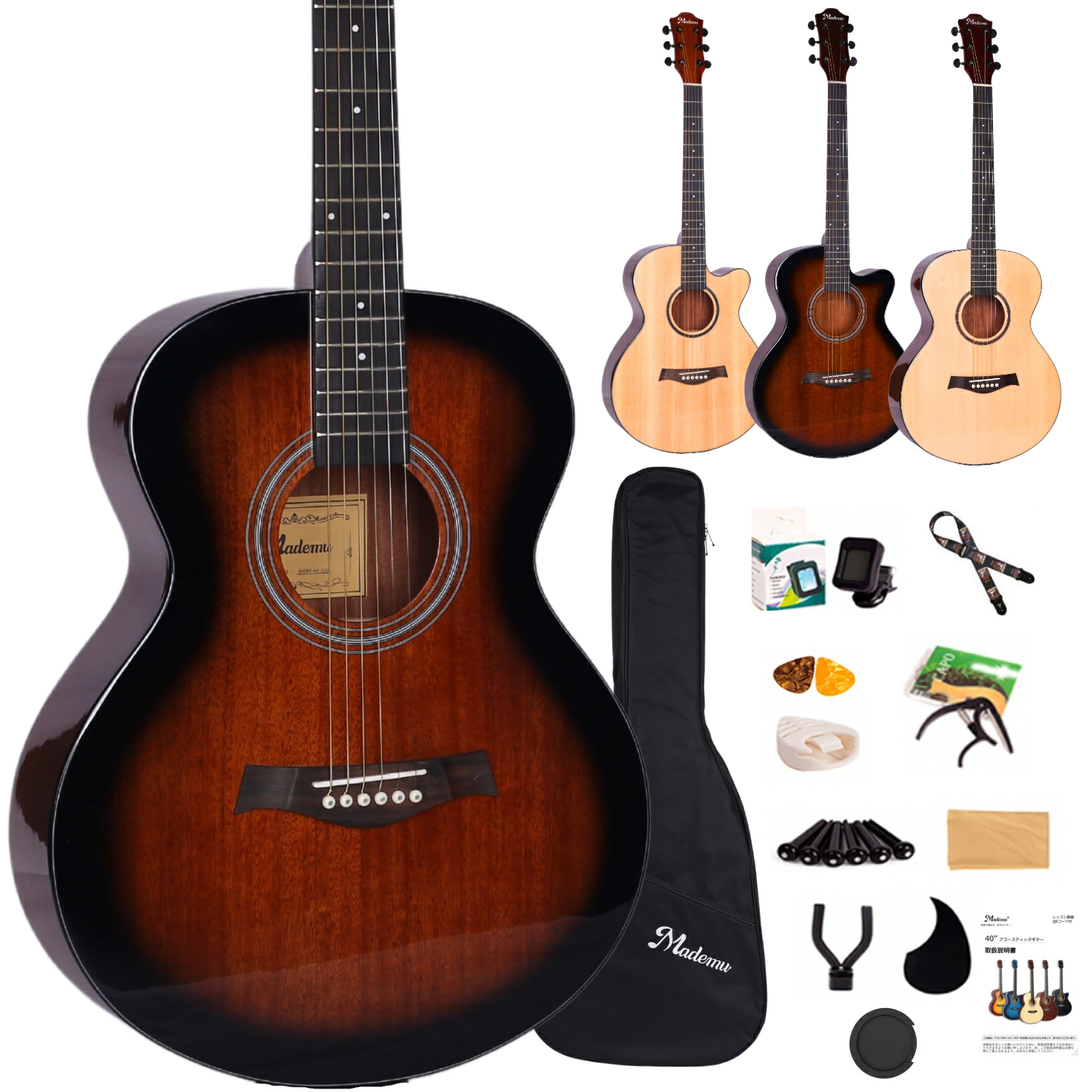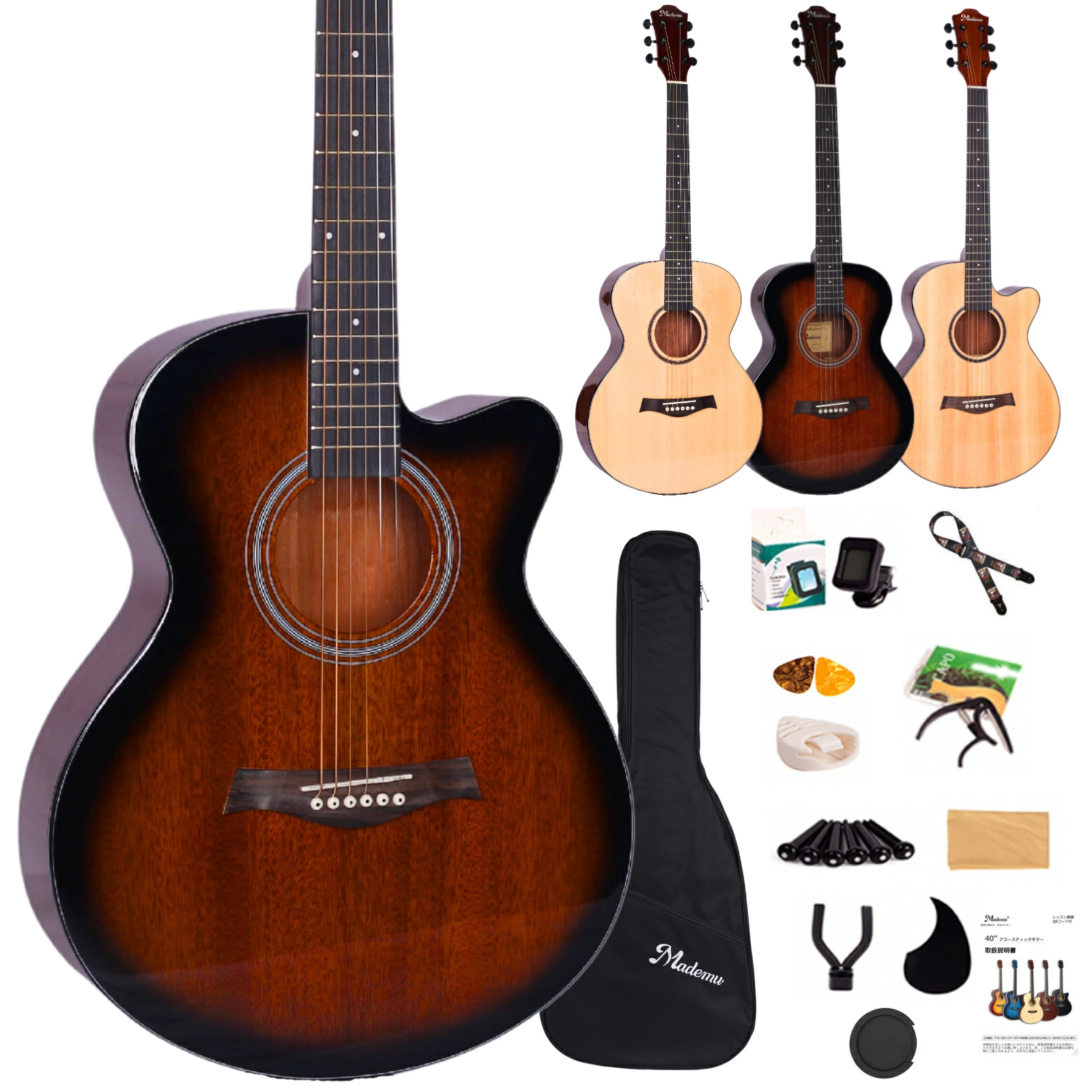 検索用キーワード:検索用キーワード:アコースティックギター 単板 アコギ フォークギター 40インチ 初心者セット 入門セット 13点セット マホガニー カッタウェイ ケース付き 教則書付き チューナー付き 予備弦付き ピック付き ストラップ付き 本格仕様 良音 豊かな響き クリアな高音 弾きやすい 握りやすいネック 軽量 届いてすぐ弾ける 練習用 レッスン用 自宅練習 独学 音楽教室 習い事 音楽デビュー 発表会 文化祭 軽音部 趣味 初めてのギター 子供用 学生向け 女性向け 大人初心者 コスパ 人気 おすすめ おしゃれ シンプル デザイン ギフト プレゼント 誕生日 クリスマス 入学祝い 卒業祝い 新生活 送料無料 国内発送 安心保証 Mademu ギターセット 爆買