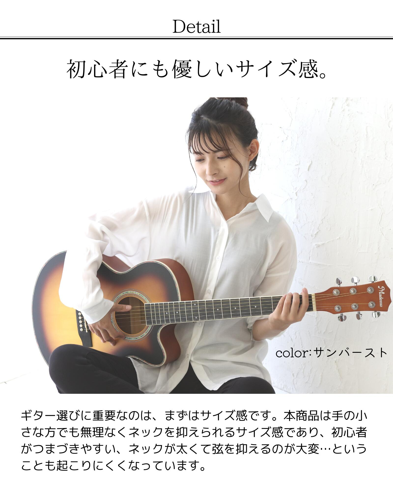 検索用キーワード:アコースティックギター アコギ フォークギター 40インチ 初心者セット 入門セット 16点セット ケース付き 教則書付き チューナー付き 予備弦付き ピック付き ストラップ付き 軽量 良音 弾きやすい 握りやすいネック 届いてすぐ弾ける 練習用 レッスン用 自宅練習 独学 音楽教室 習い事 音楽デビュー 発表会 文化祭 軽音部 趣味 初めてのギター 子供用 学生向け 女性向け 大人初心者 キッズギター コスパ 人気 おすすめ かわいい おしゃれ シンプル デザイン ギフト プレゼント 誕生日 クリスマス 入学祝い 卒業祝い 新生活 送料無料 国内発送 安心保証 Mademu ギターセット 爆買