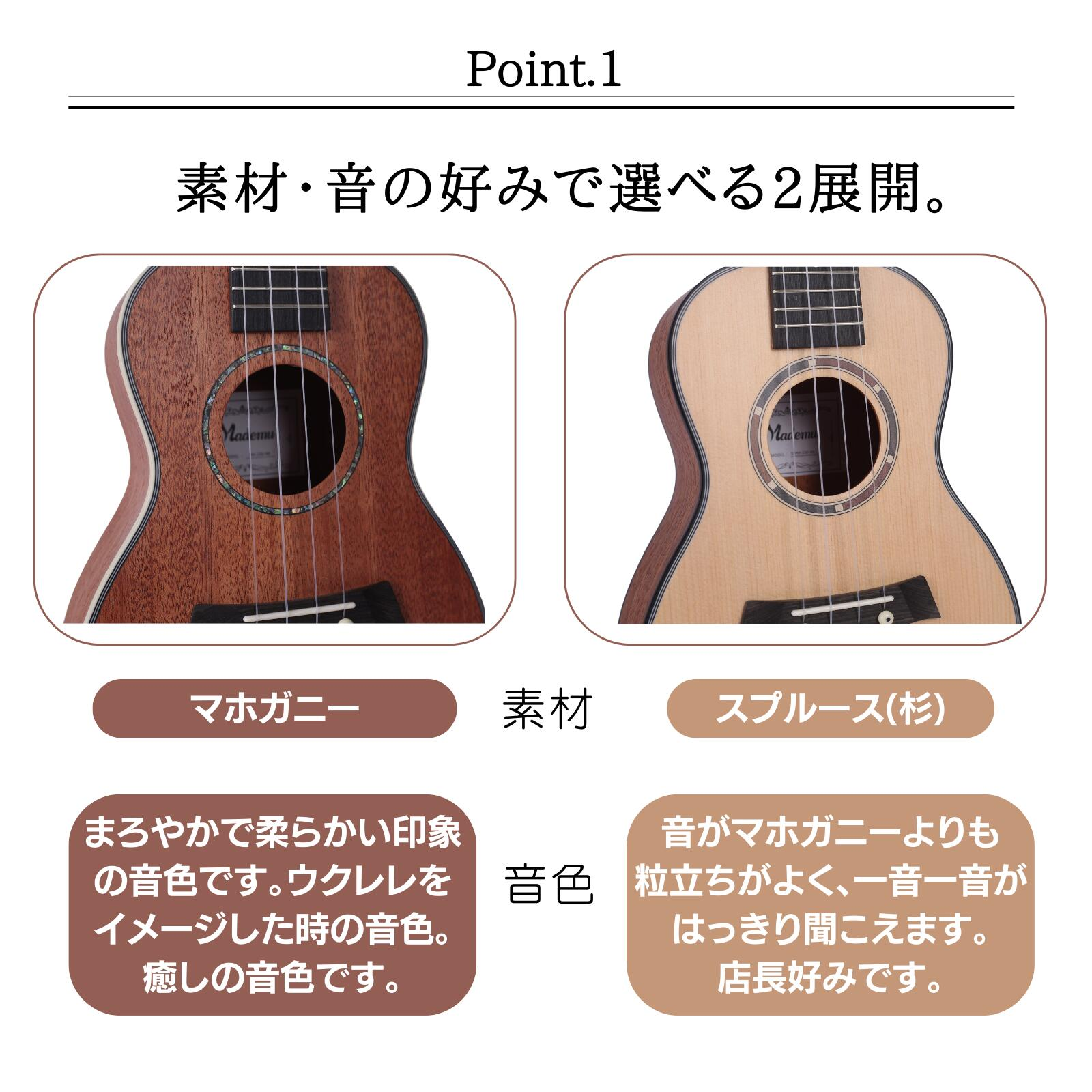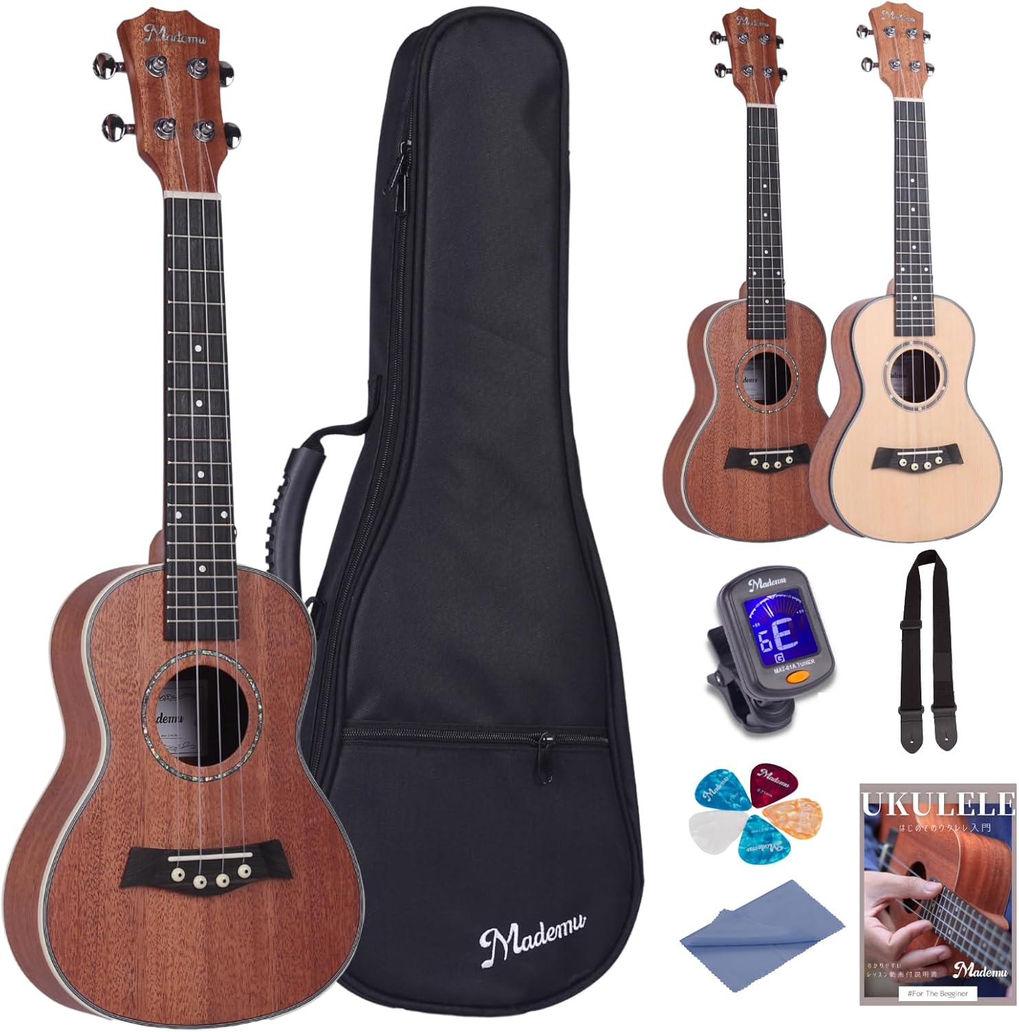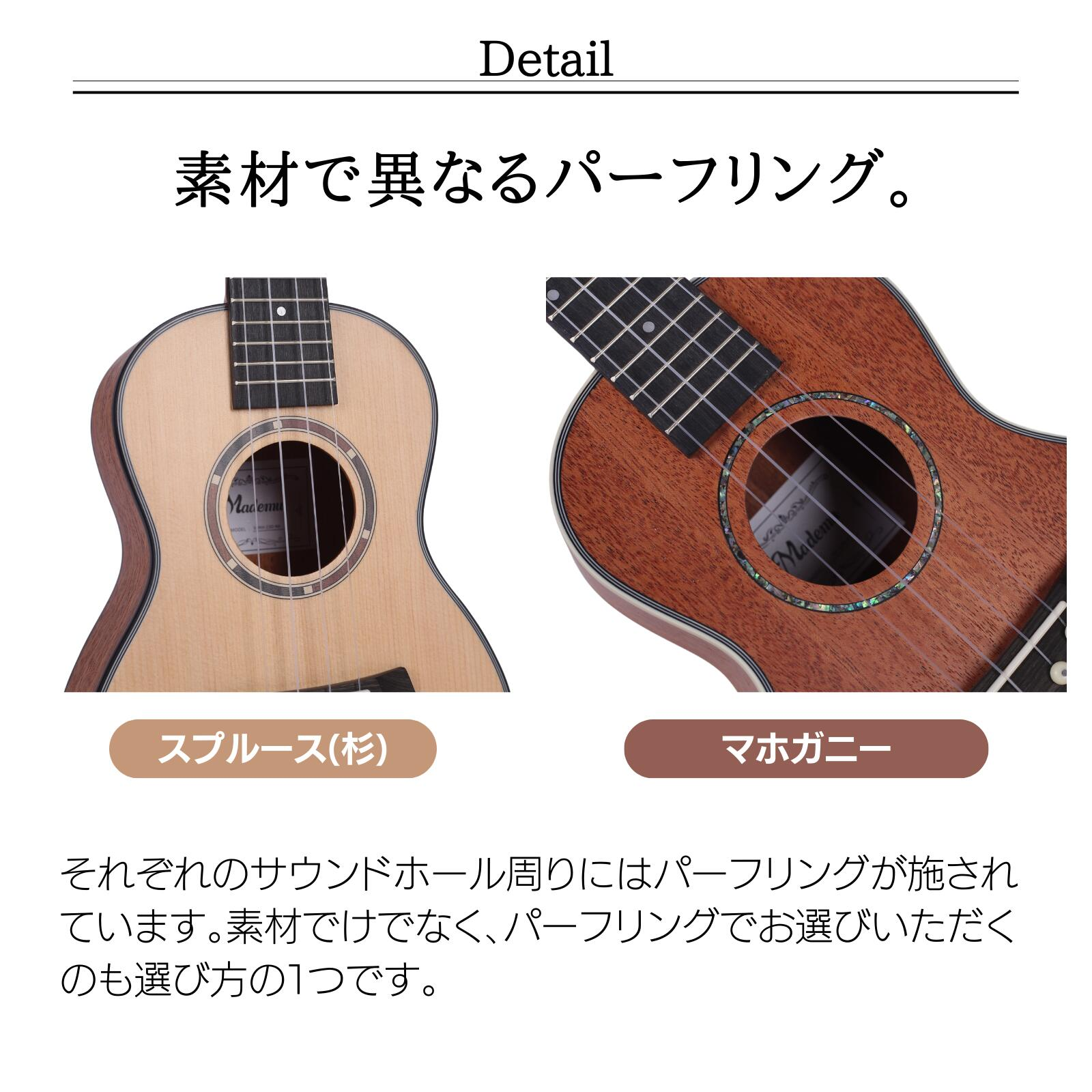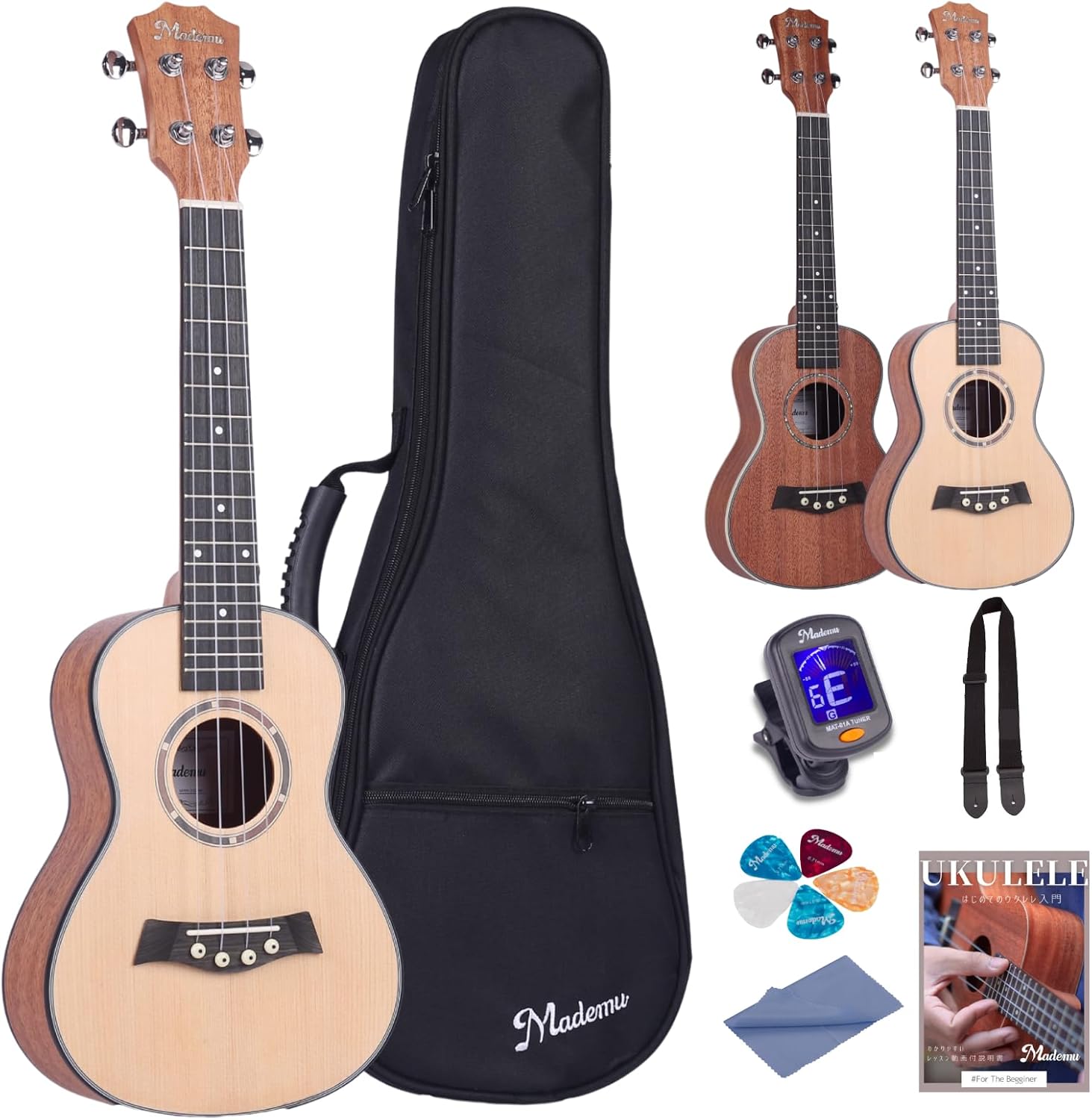 ウクレレ コンサート 初心者セット 23インチ 7点セット マホガニー スプルース 教則書付 ケース付 mademu ソロウクレレ 入門 練習 子供 学生 プレゼント ギフト